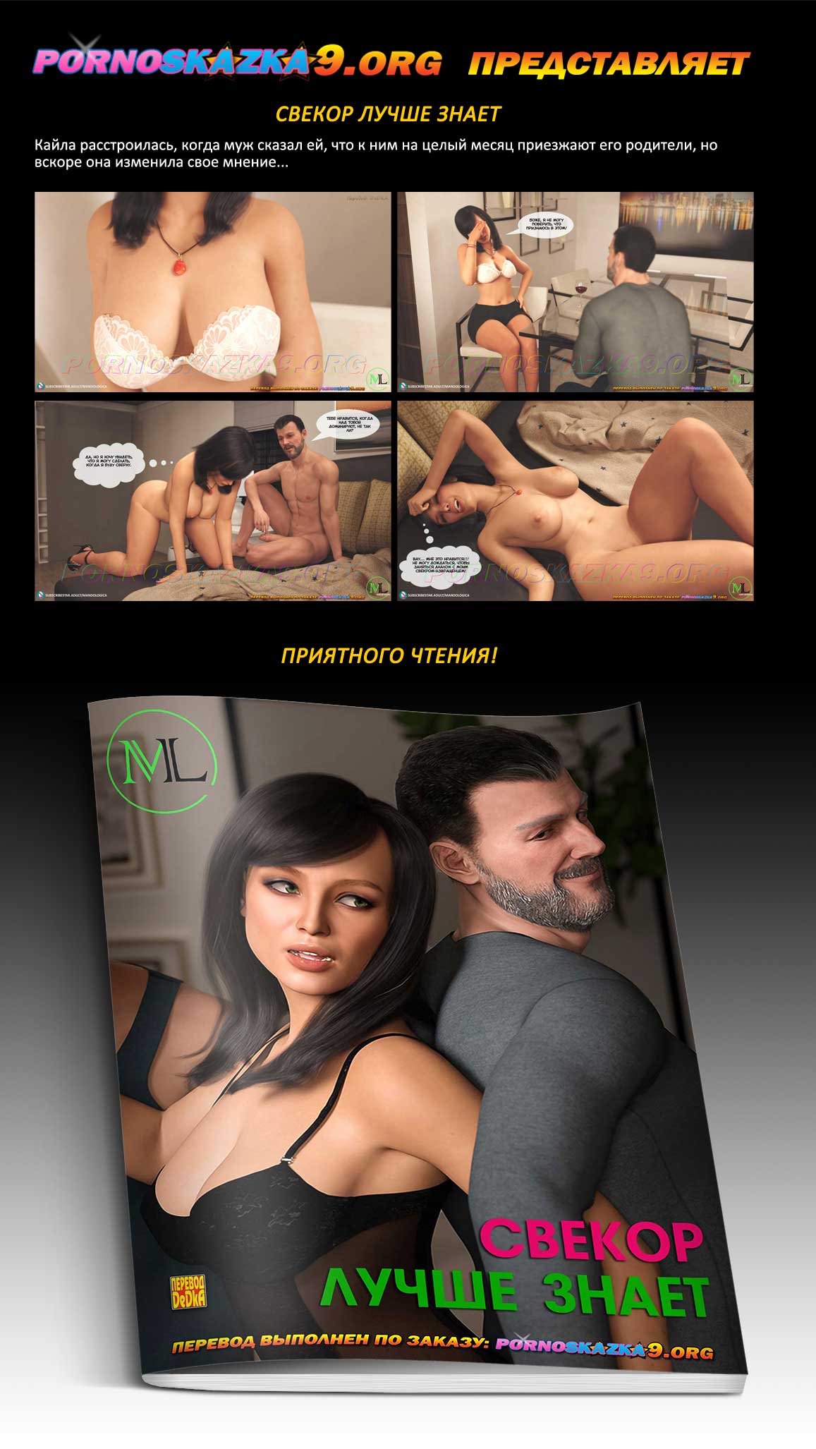 Порно комикс «Свекор лучше знает.» Кайла расстроилась, когда муж сказал ей, что к ним на целый месяц приезжают его родители, но вскоре она изменила свое мнение…